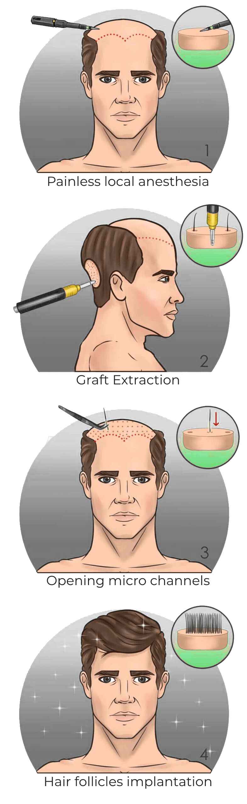 Finally, the hair follicles are gently placed into the tiny openings. This step is very important to make sure your new hair looks natural and blends well with the existing hair. Once the implantation is complete, the area is cleaned and bandaged to protect it and help it heal. Depending on how many grafts you need, you might need to return for more sessions.